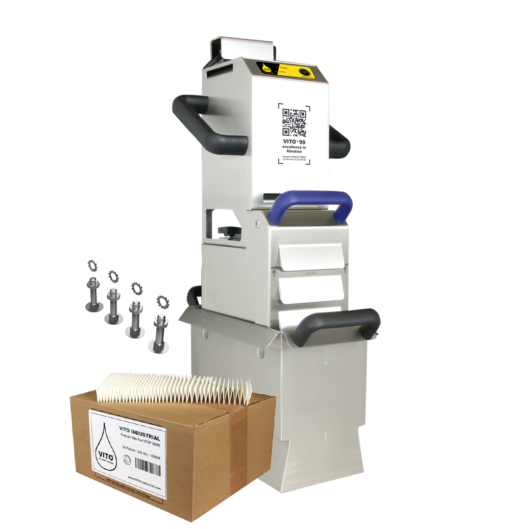 Der VITO 90 kann für eine schnelle Reinigung einfach in die Bearbeitungsanlage gestellt werden: In kürzester Zeit lassen sich damit alle Ihre Behälter pflegen und reinigen – die patentierte, mechanische Mikrofiltration des VITO benötigt dazu nur wenige Minuten. Das Ergebnis sind saubere, hochwertige Kühlschmierstoffe, Öle und wässrige Lösungen - befreit von Spänen und Feststoffen.