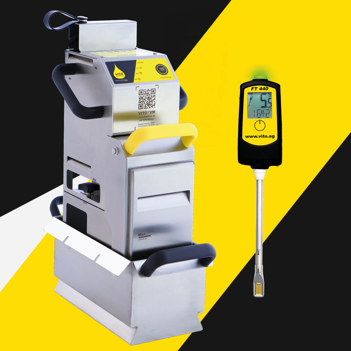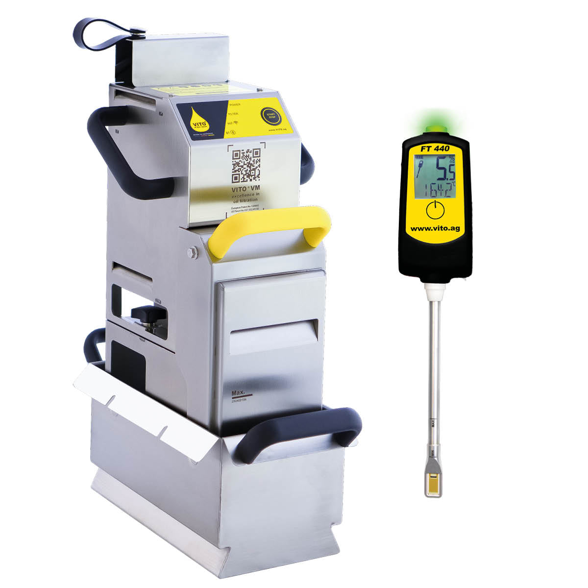 Das gereinigte Öl kann nach der Filtration sofort wieder verwendet werden, was den Betrieb in Ihrer Küche noch effizienter gestaltet. Der VITO VM überzeugt durch sein kompaktes und modernes Design, das eine einfache Handhabung gewährleistet. Ein QR Code auf der Elektroeinheit führt direkt zu einer speziellen VM-Webseite, auf der alle wichtigen Informationen auf einen Blick abrufbar sind.